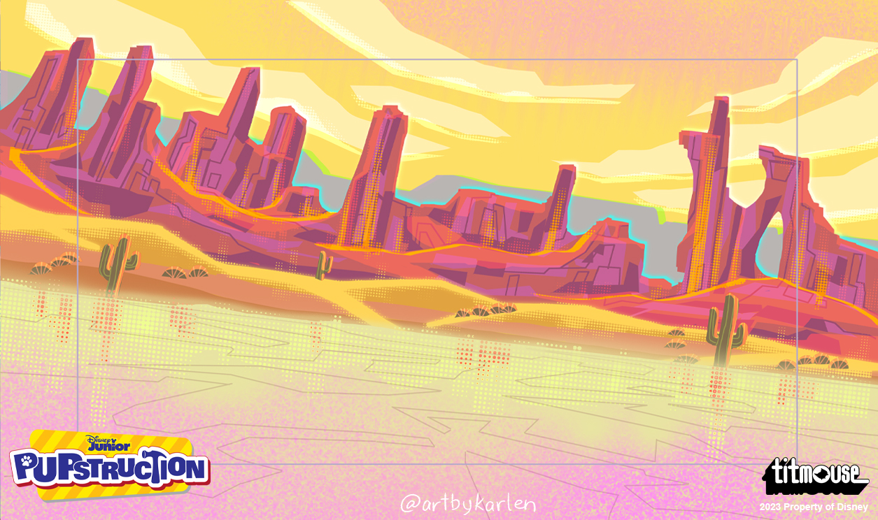 The show combines some 2D backgrounds with CG characters. I was responsible for layout and design for these:
