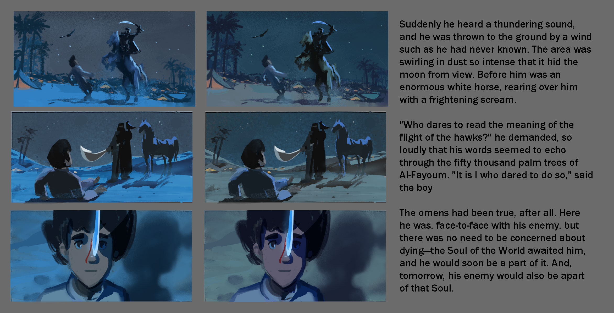 An ongoing visual development project based on the book The Alchemist by Paulo Coelho